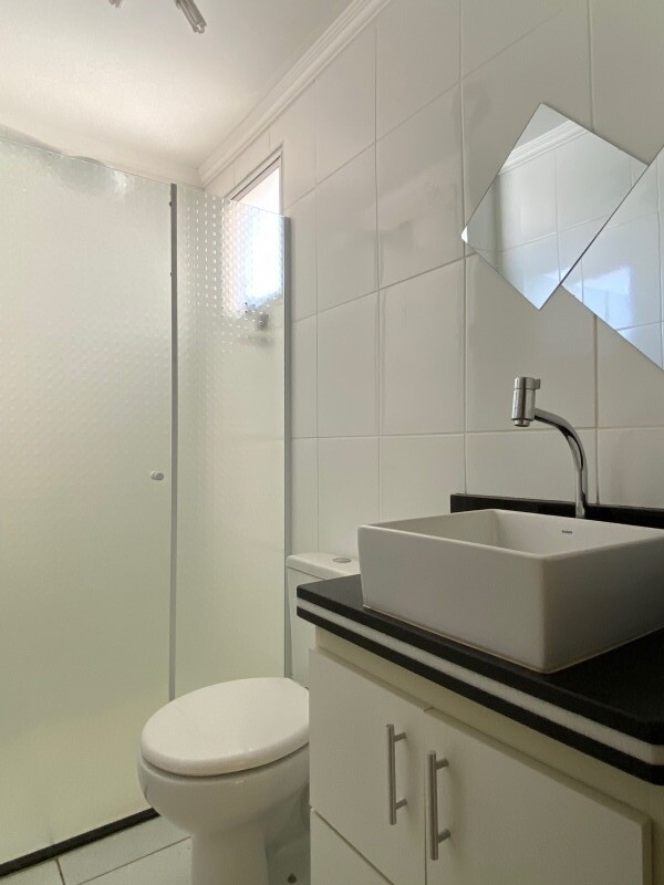 - Banheiro com gabinete e box em vidro temperado