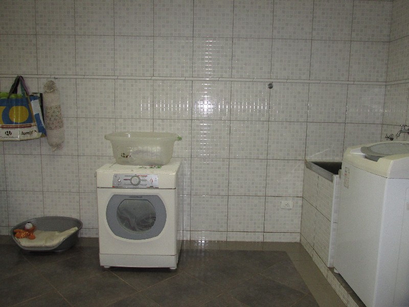 - Área de serviço com armários e pátio interno para secagem de roupa