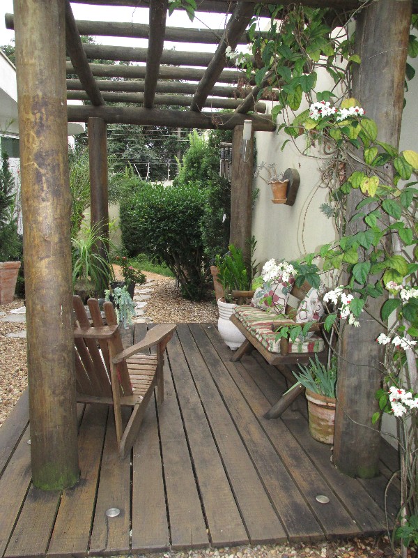 - Quintal com paisagismo e espaço gourmet com churrasqueira e cooktop