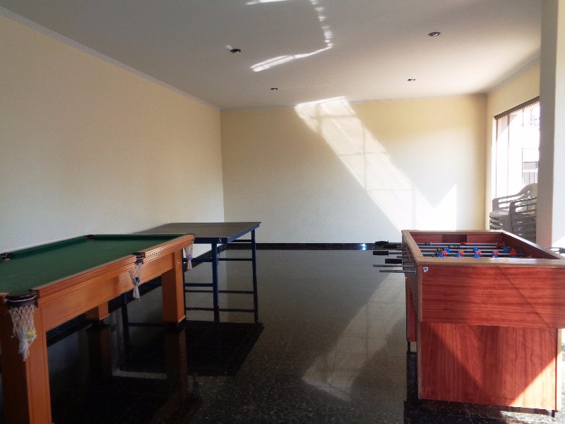 Condomínio com espaço gourmet, salão de festas e jogos.