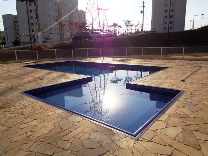 Condomínio com piscina, salão de festas, quiosque, quadra e portaria 24 h.