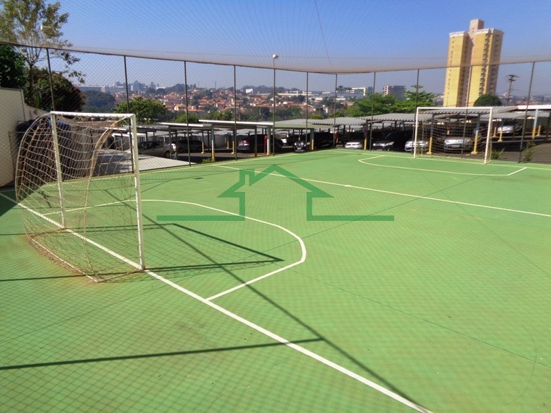 Condomínio com piscina e quadra.