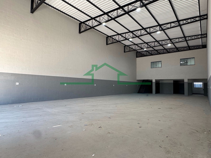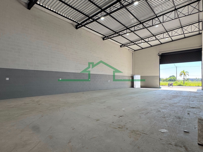 Acabamento bom, com portão automático, pé direito de 7m e piso de alta resistência. Ótima localização.