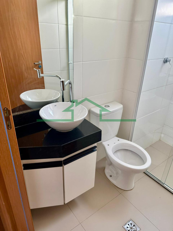 - Banheiro social com cuba sobreposta, gabinete e box blindex