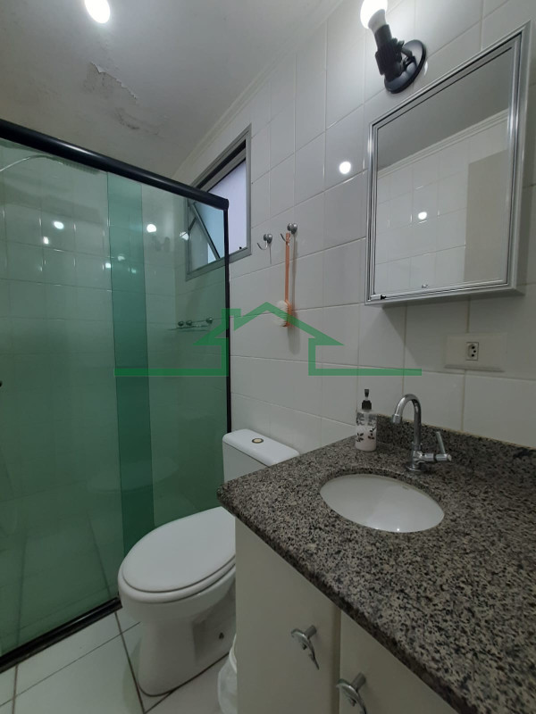 - Banheiro social com gabinete e box de vidro
