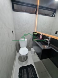Casa térrea com garagem para 2 carros com portão eletrônico, sala ampla para 2 ambientes integrada com a cozinha planejada, lavabo, 3 quartos (2 suítes com armários e ares-condicionados), lavanderia fechada, depósito, área gourmet com churrasqueira, TV e ar-condicionado. Acabamento moderno. Excelente localização. Terreno medindo 160 m², com área construída de 130 m².